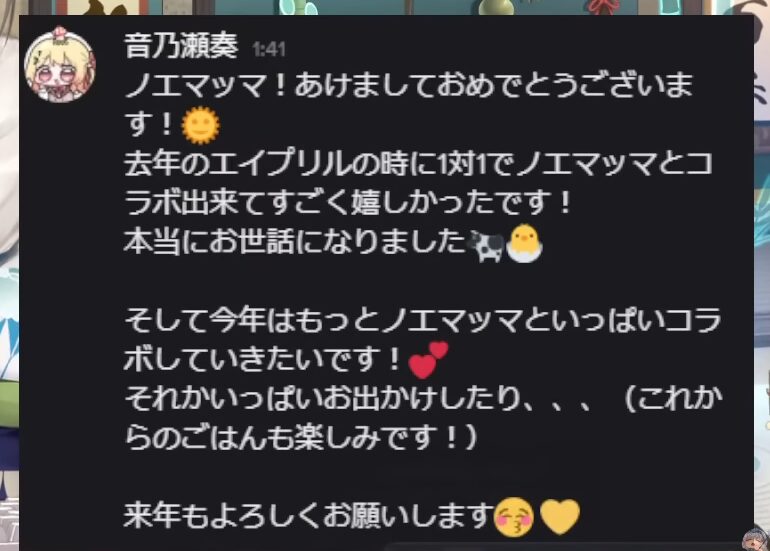 しかし、ノエルは「2年前の司会(ラミィと天音かなた)の時も同じことを言っていた」と思い出し、少ししんみりする場面もありました。
